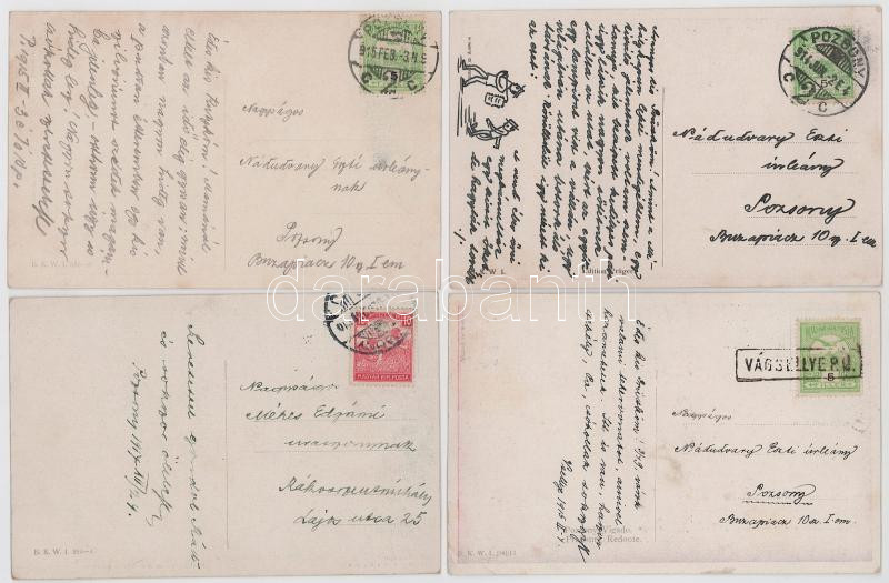 Pozsony, Pressburg, Bratislava - 4 db RÉGI képeslap Marx Bélától / 4 pre-1945 town postcards s: Marx Béla