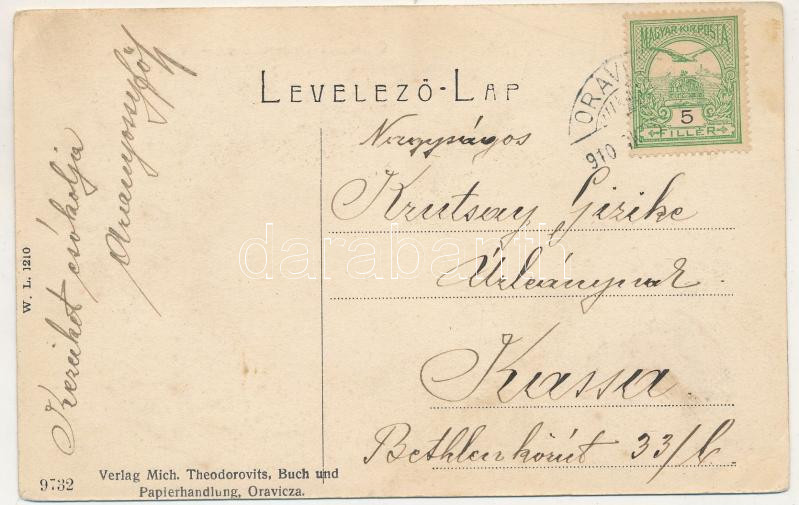1910 Oravicabánya, Oravica, Oravita; Vízesés. W. L. 1210. Mich. Theodorovits kiadása / waterfall (ázott / wet damage)