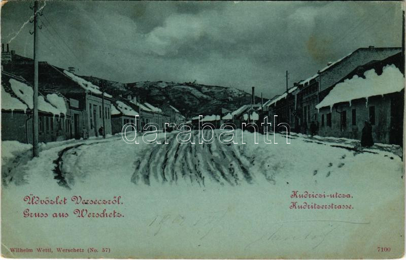 1902 Versec, Vrsac; Kudriczi utca télen. Wilhelm Wettl kiadása / Kudri...