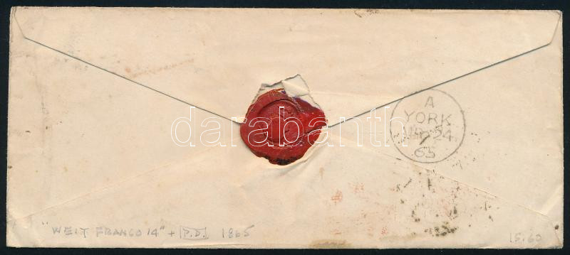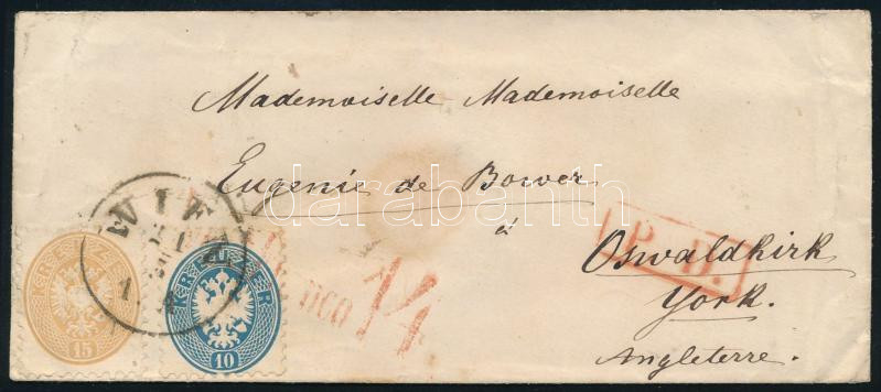 Ausztria 1865 Levél 10kr + 15kr bélyegekkel "WIEN" - "YORK"