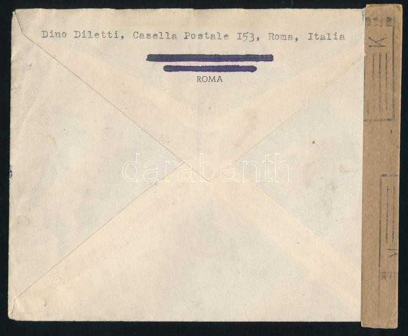 Olaszország 1946 Dekoratív légi cenzúrázott levél szép levélzáróval Rómából Ausztriába