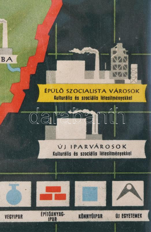 cca 1950 "Épül a vas és acél országa" villamosplakát, kis lapszéli hiá...
