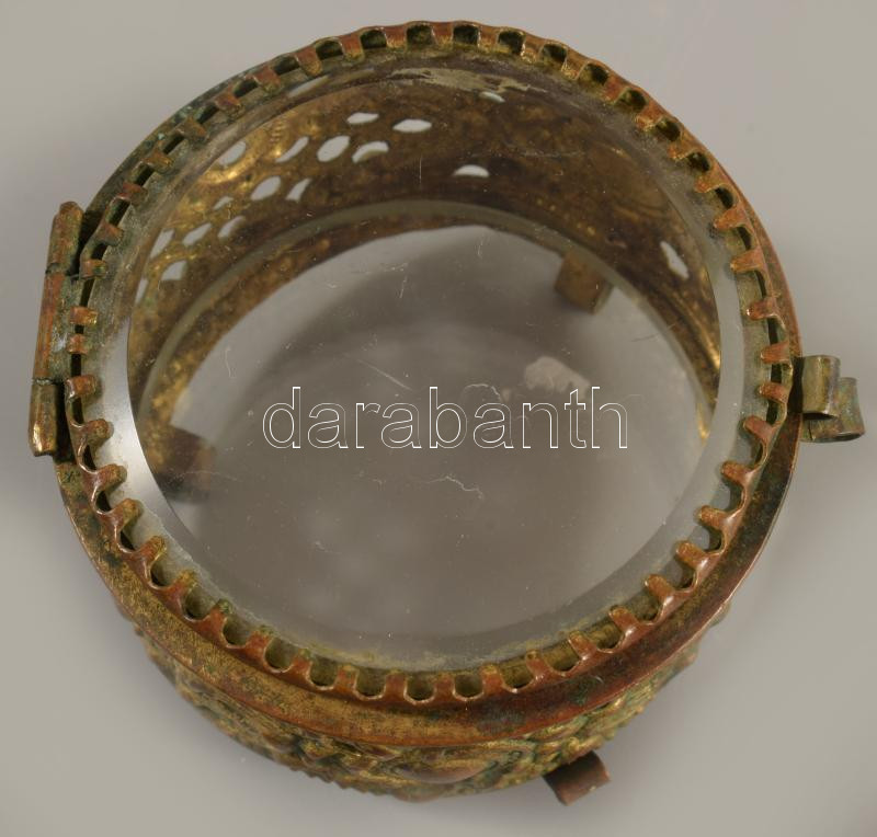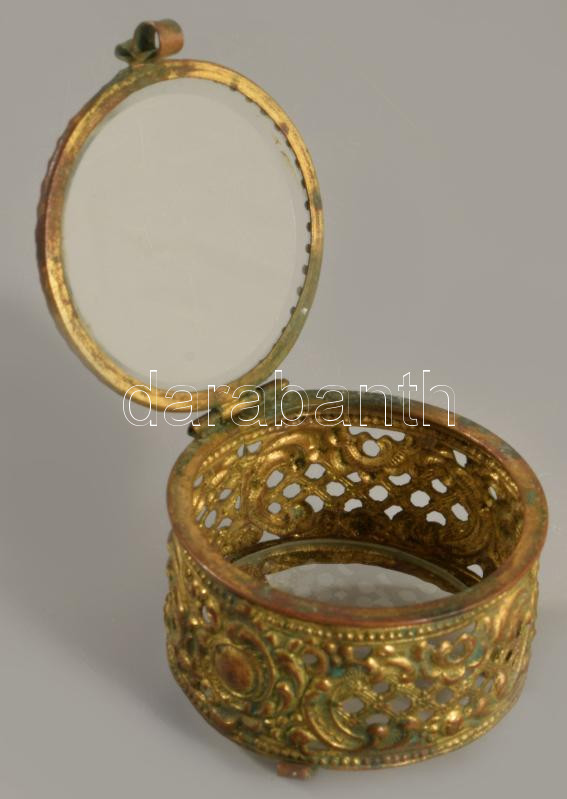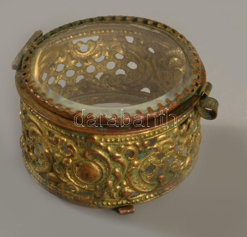 Antik ékszeres dolog, üveglap betéttel, 5x4 cm