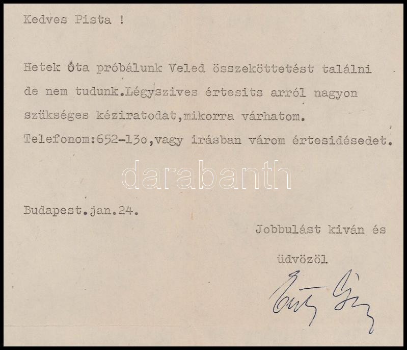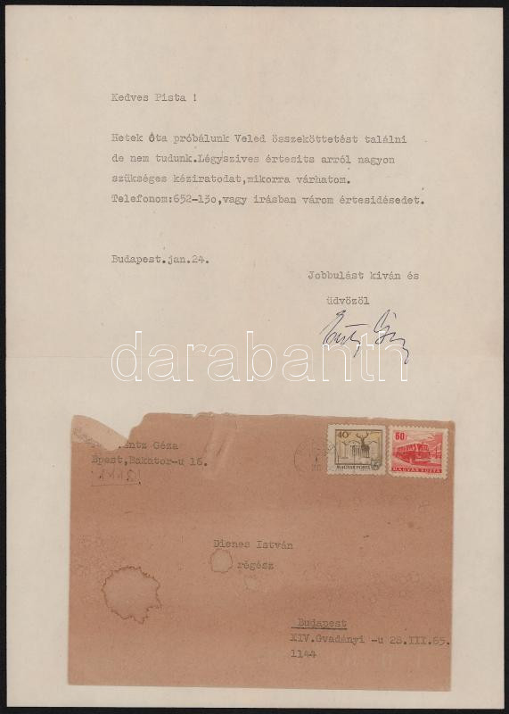 1979 Entz Géza (1913-1993) művészettörténész gépelt levele Dienes István (1929-1995) régész, muzeológus részére, megküldendő kézirat ügyében, autográf aláírásával, borítékkal, 1 sztl. lev.