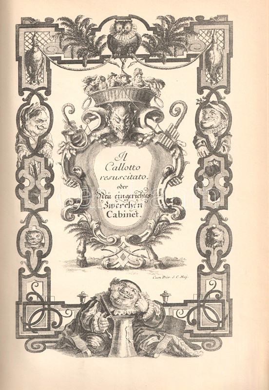 Groteszk törpefigurákat közzé tevő albumunk Jacques Callot (1592-1635), a Firenzében tanult, kalandos életű francia rézmetsző és illusztrátor munkája nyomán készült. A firenzei vásáros népélet komikus típusait törpék képében megjelenítő rézmetszeteit "Varie figure gobbi di Jacobo Callot" címmel adta ki (Nancy, 1622 körül), a kiadást követően a rajzait sokan másolták. A háborúkkal teli XVII. század során az album feledésbe merült, ám a XVIII. század elején egy német vállalkozó fantáziát látott a műben, és "Il Calotta resuscitato oder neu eingerichtes Zwechen Cabinet" címen, német nyelvű szatirikus versekkel kiegészített szöveglapokon újra kiadta a Callot-rajzokat. Kötetünk ennek az 1710 körüli, groteszk, késő barokk albumnak a hasonmása.