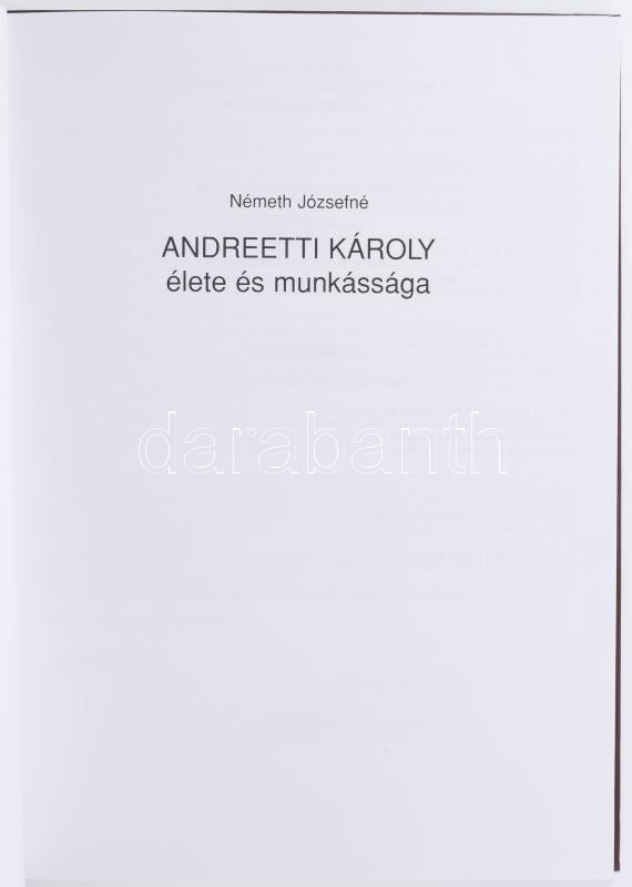 Németh Józsefné: Andreetti Károly élete és munkássága. Sóskút, 2000, m... https://www.darabanth.com/en/517-Auction-philately-postcards-numismatics-artwork-books-collectibles-jewelry/522.0/Books/Books-History~141/Nemeth-Jozsefne-Andreetti-Karoly-elete-es-munkassaga-Soskut-2000-magankiadas-140-p~II3509467