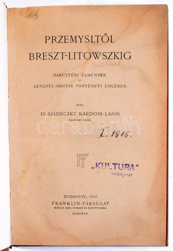 Szádeczky Kardoss Lajos, Dr.: Przemysltől Breszt-Litovszkig. Harcztéri... https://www.darabanth.com/en/517-Auction-philately-postcards-numismatics-artwork-books-collectibles-jewelry/522.0/Books/Books-Military~142/Szadeczky-Kardoss-Lajos-Dr-Przemysltol-Breszt-Litovszkig-Harczteri-elmenyek-es-lengyel-magyar~II3504108