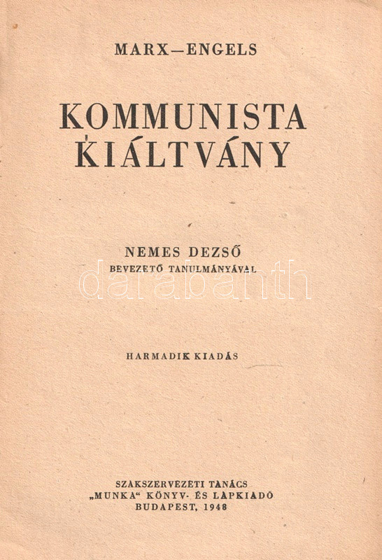 Kommunista kiáltvány. Nemes Dezső bevezető tanulmányával. Fordította: Rudas László.