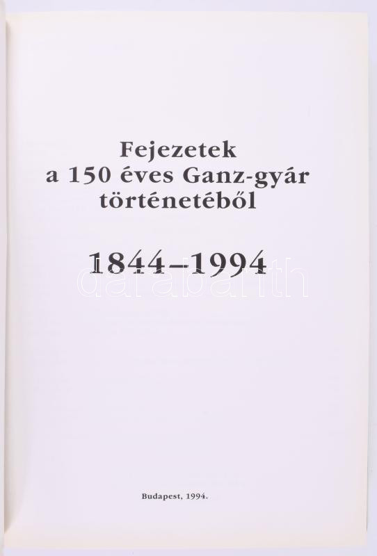 Fejezetek a 150 éves Ganz-gyár történetéből. 1844-1994. Szerk.: Kiss József, Mezei István. Bp., 1994, S&W Nyomda. Fekete-fehér és színes képekkel illusztrált. Kiadói egészvászon-kötés. Kiadói papírborítóval