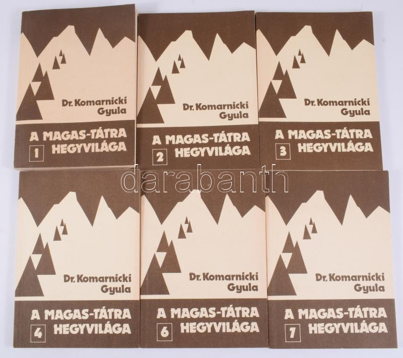 Komarnicki Gyula: A Magas-Tátra hegyvilága. (Hegymászó- és turistakalauz.) 1-4., 6-7. kötetek. (Az 5. kötet hiányzik.) Bp., 1985, Sport. Második, javított kiadás. Kiadói papírkötés, az 1. kötetben térkép-melléklettel.