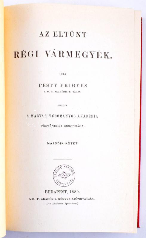 Pesty Frigyes: Az eltünt régi vármegyék I-II. Bp., 1988, Állami Könyvterjesztő Vállalat-Könyvértékesítő Vállalat. Reprint kiadás. Kiadói egészvászon kötés.