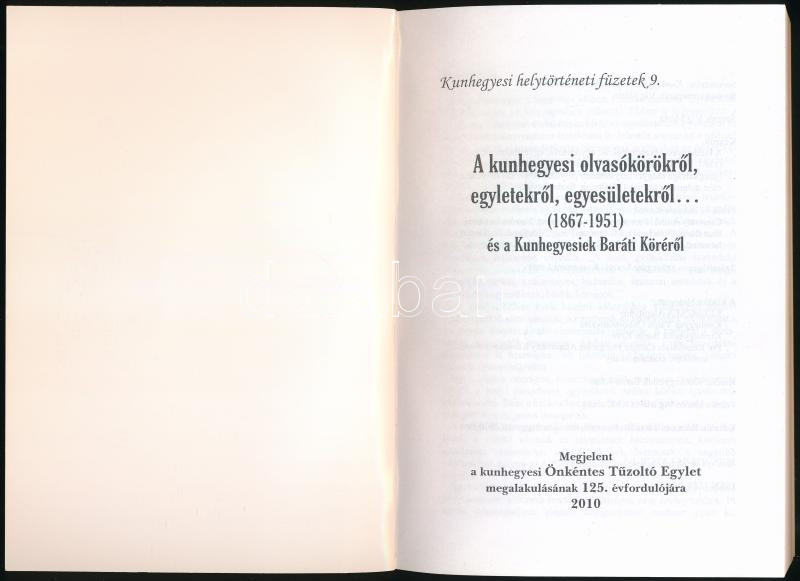 Víg Márta: A kunhegyesi olvasókörökről, egyletekről, egyesületekről... (1867-1951) és a Kunhegyesiek Baráti Köréről. Kunhegyesi helytörténeti füzetek 9. Kunhegyes, 2010, Kunhegyesiek Baráti Köre, 339+[1] p. Kiadói papírkötés.