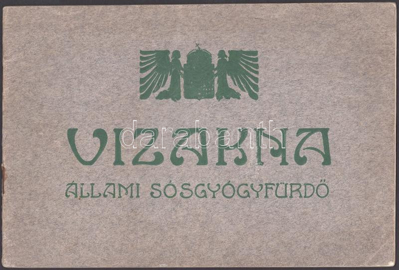 cca 1910 Vízakna Állami Sósgyógyfürdő. Bp., Pallas-ny., 27+5 p. Fekete-fehér fotókkal, alaprajzokkal, helyszínrajzzal, vasúti térképpel. Kiadói haránt alakú papírkötés, a borítón angyalos-szent koronás nagycímerrel, az utolsó lapon ceruzás alaprajzokkal.