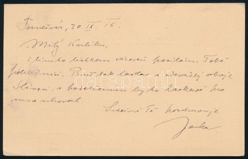 https://www.darabanth.com/en/517-Auction-philately-postcards-numismatics-artwork-books-collectibles-jewelry/522.0/Hungarian-philately-and-postal-history/Issues-between-1900-1919~32/1916-Hadisegely-felaras-dijjegyes-levelezolap-TEMESVAR-Bohmen-Hodobay-58~II3505119