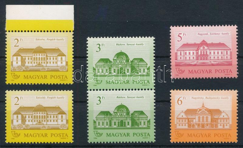 1986 Kastélyok (I.) 2 db 2Ft, 3Ft függőleges pár, 5Ft és 6Ft 12 3/4 : 12 1/4 fogazással matt-fényes papíron (13.000)