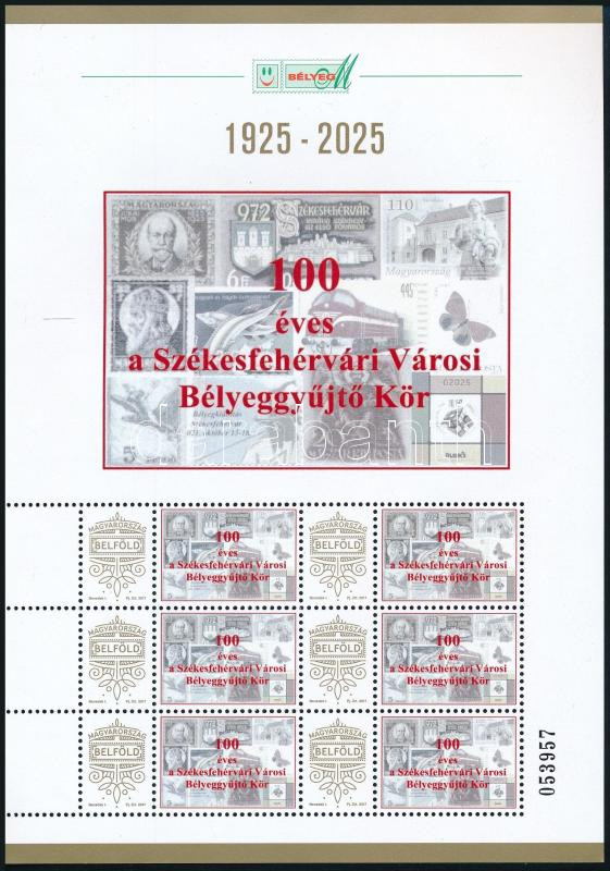 https://www.darabanth.com/en/517-Auction-philately-postcards-numismatics-artwork-books-collectibles-jewelry/522.0/Hungarian-philately-and-postal-history/New-issues-from-2020~55/2025-100-eves-a-Szekesfehervari-Varosi-Belyeggyujto-Kor-megszemelyesitett-hatos-kisiv~II3506025