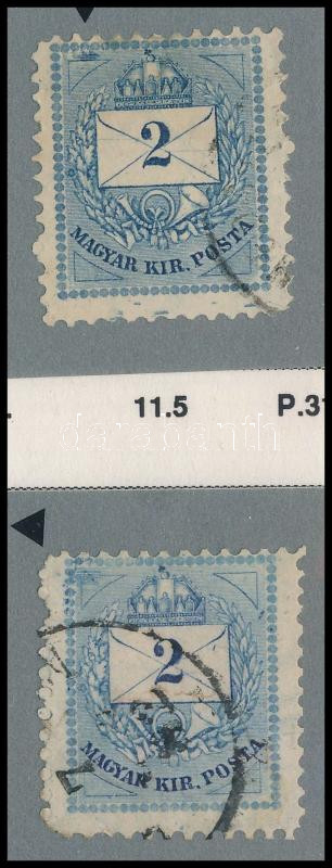 1881 2 db 2kr látványos, ritka vésésjavítással (ex Orbán, Sebestyén kiállítási anyagból)