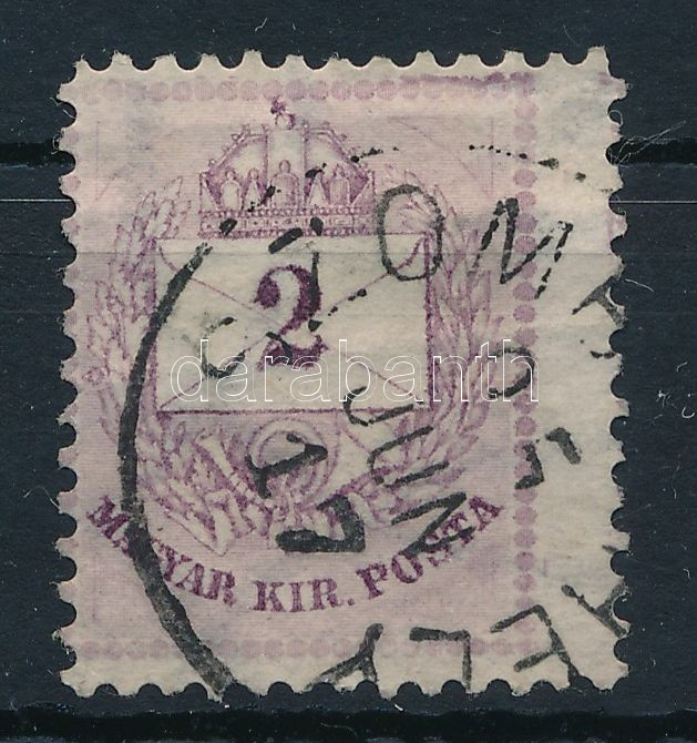 1881 Színesszámú 2kr erősen képbe fogazva, a jobb felső gyöngysor javított