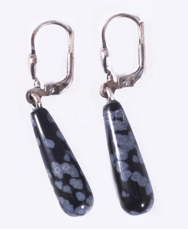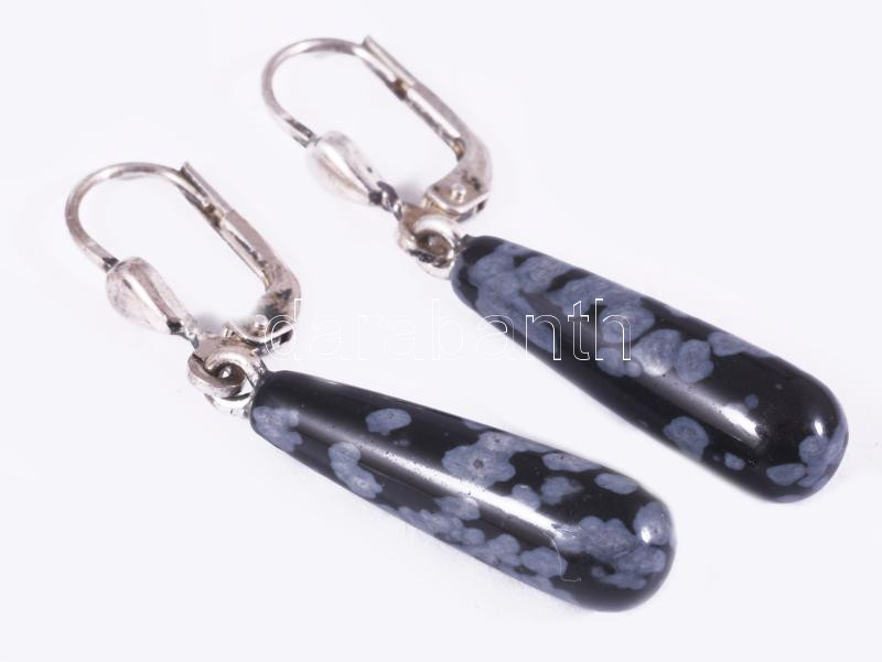 Ezüst (Ag) fülbevaló pár, obszidián cseppel, jelzett, bruttó 3g