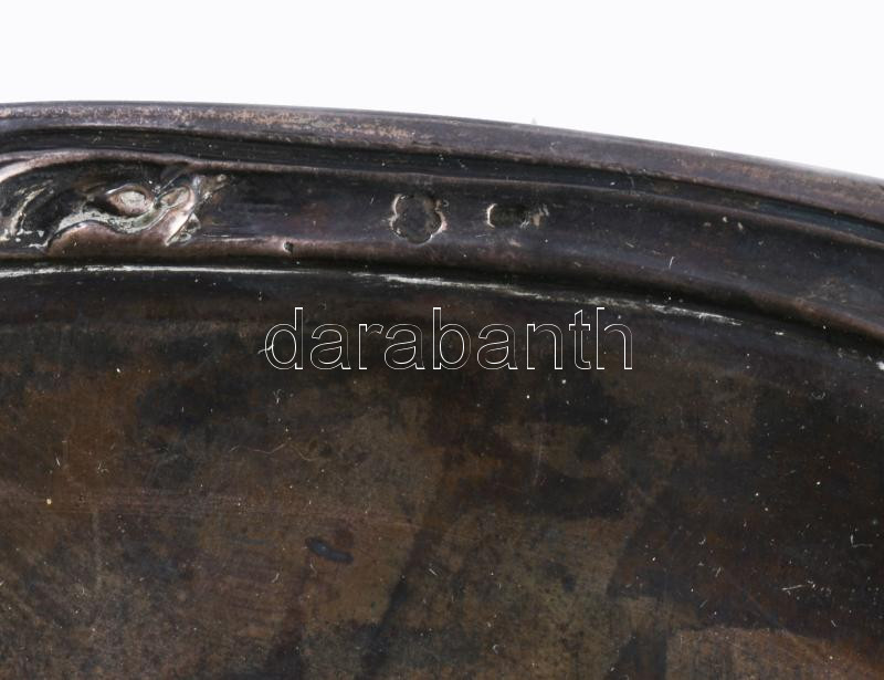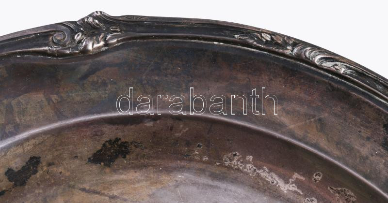 Ezüst (Ag) kínáló, plasztikus virágmintás peremrésszel. Bécs, 1872-1922 közötti fémjel, 800 ezrelékes ezüst, SK mesterjegy, d: 38 cm, nettó 1316g