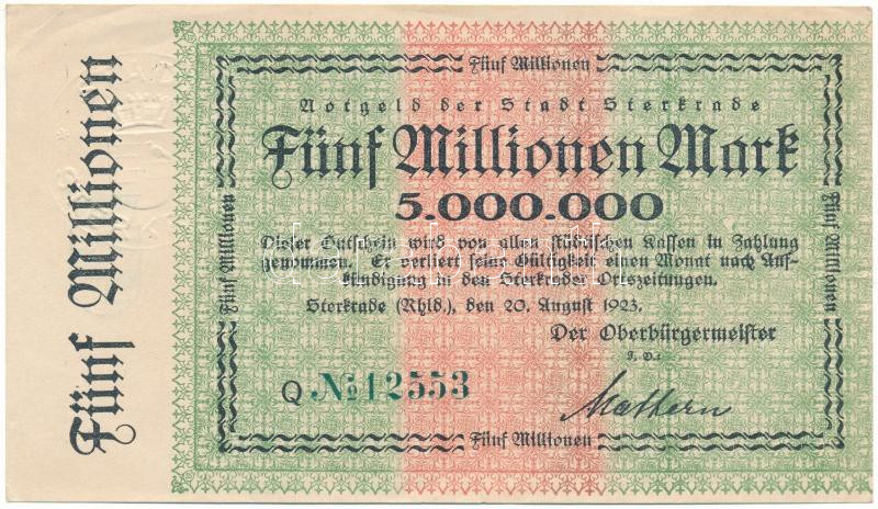 Németország / Weimari Köztársaság 1923. 5.000.000M szárazpecséttel T:F szép papír