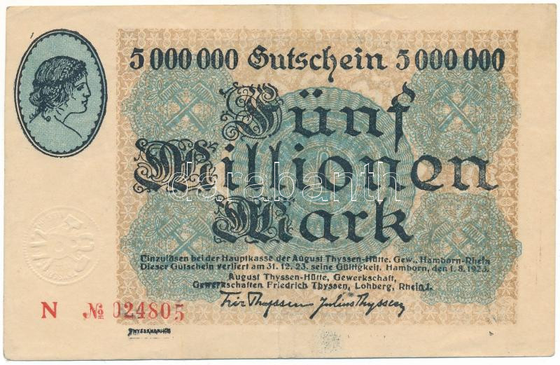 Németország / Weimari Köztársaság / Hamborn 1923. 5.000.000M szárazpecséttel T:F