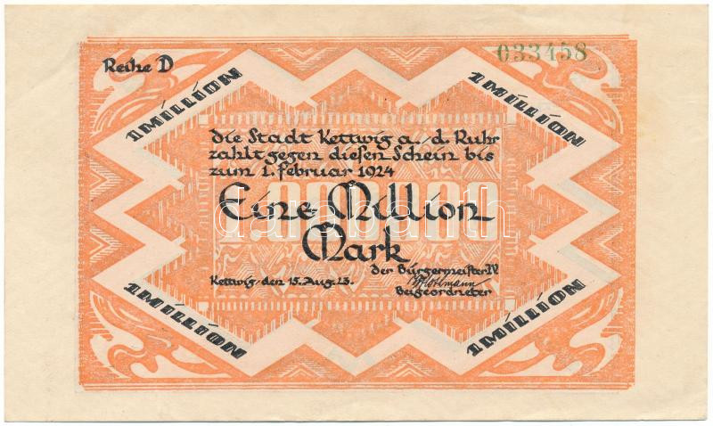 Németország / Weimari Köztársaság / Kettwig 1923. 1.000.000M T:F szép papír