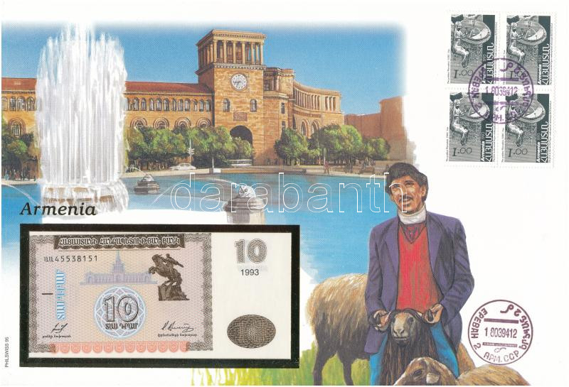 Örményország 1993. 10D felbélyegzett borítékban, bélyegzéssel T:UNC
