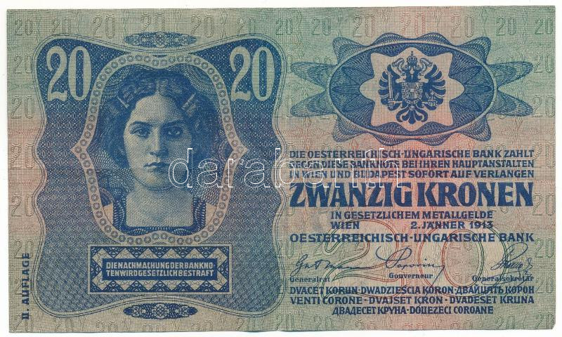 1913. 20K "1017 686642", II. kiadás, felülbélyegzés nélkül T:F szép pa...