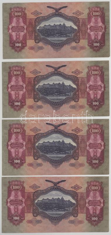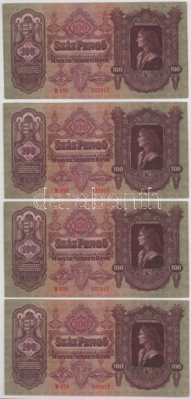 1930. 100P (4x) sorszámkövetők, egy közeli sorszámmal "E 636 032914 - E 636 032916, E 636 032919" T:XF,VF