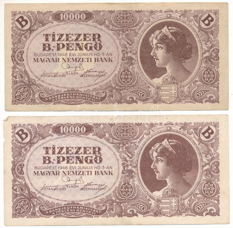 https://www.darabanth.com/en/517-Auction-philately-postcards-numismatics-artwork-books-collectibles-jewelry/522.0/Numismatics/Hungarian-Banknotes~474/1946-10000BP-2x-T-F-egyiken-kis-szakadasAdamo-P35~II3506466