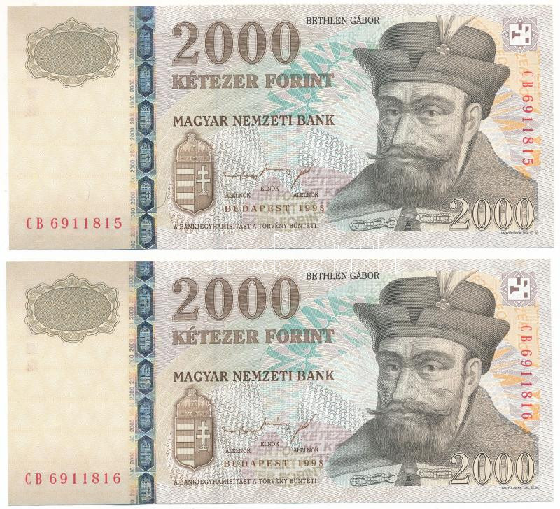 1998. 2000Ft (2x) sorszámkövetők "CB 6911815 - CB 6911816" T:UNC,AU