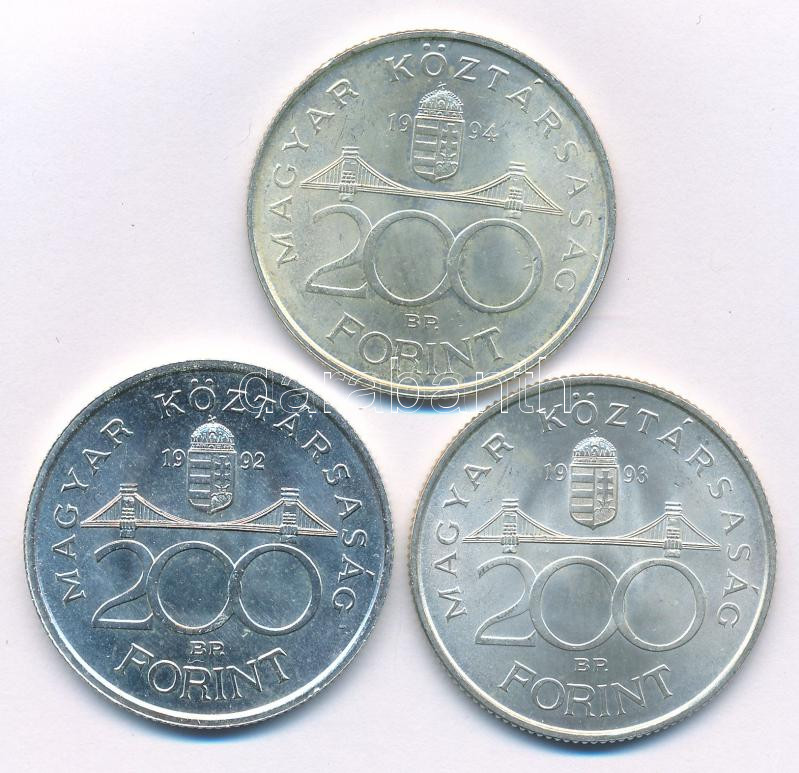1992. 200Ft Ag "MNB" + 1993. 200Ft Ag "MNB" + 1994. 200Ft Ag "Deák" T:AU