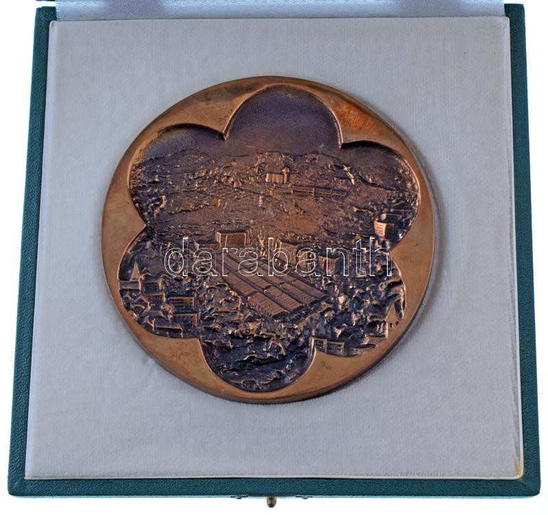 1980 k. "A Termelőszövetkezetért - Rozmaring" kétoldalas bronz plakett, előlapon Pesthidegkút látképével(?), eredeti tokban (103mm) T:AU