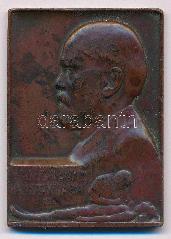 Hungary 1912. "For Dr. Antal Genersich from his thankful students" bronze, struck, one-sided plaque. Sign: János Pásztor (44x60mm) C:AU,XF patina