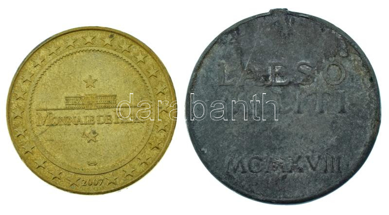 Ausztria 1918. "CAROLVS / LAESO MILITI MCMXVIII" Sebesültek Érme Zn kitüntetés fül nélkül + Franciaország 2007. "Monnaie de Paris" kétoldalas bronz turista emlékérem (34mm) T:AU-VF