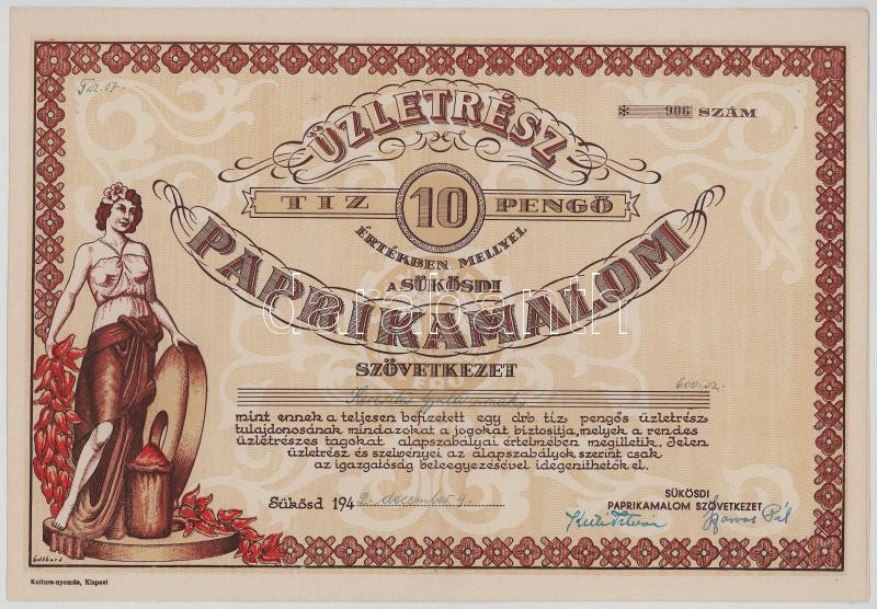 https://www.darabanth.com/en/517-Auction-philately-postcards-numismatics-artwork-books-collectibles-jewelry/522.0/Numismatics/Shares-and-Tickets~472/Sukosd-1942-Sukosdi-Paprikamalom-Szovetkezet-nevre-szolo-uzletresze-10P-ertekben-szelvenyekkel~II3511612