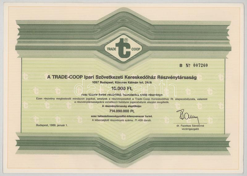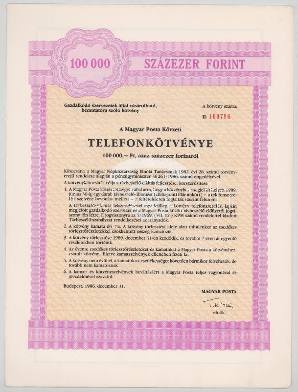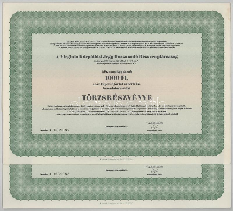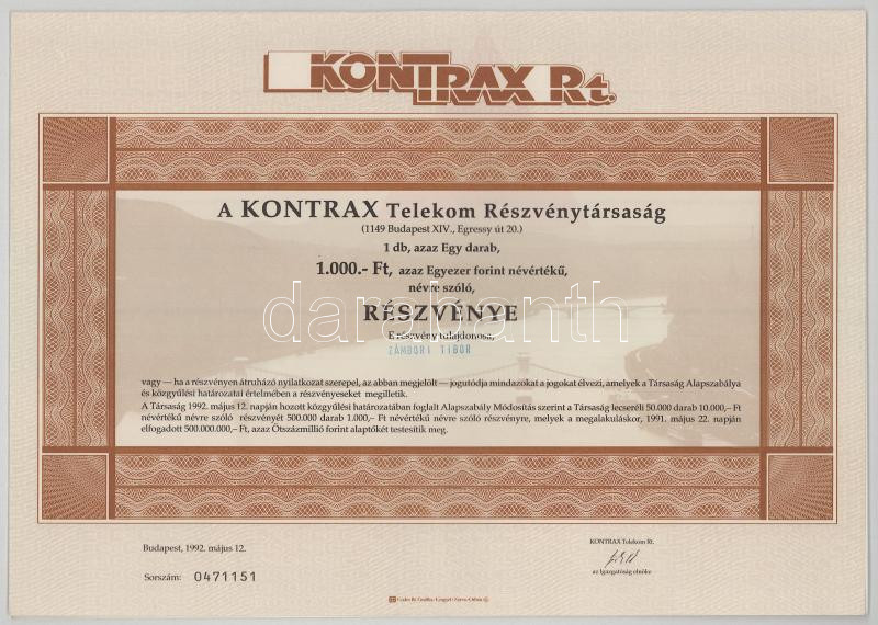 Vegyes 7db-os, 1990 körüli értékpapír tétel, benne: "A Magyar Posta Körzeti Telefonkötvénye", "Danube Budapest", "Kontrax Telekom Részvénytársaság", "Szaport Cipőgyártó Vámszabadterületi Részvénytársaság", "Virginai Kárpótlási Jegy Haszonsító Részvénytársaság" (2x), "Trade-Coop Ipari Szövetkezeti Kereskedőház Részvénytársaság" T:AU, egyik darab XF
