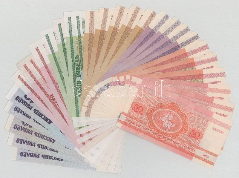 Belarus 1992. 50 Kopek (3x) + 25 Roubles - 100 Roubles (12db, 3xdiff) + 2000. 1 Rouble - 10 Roubles (11pcs, 3xdiff) C:AU-XF