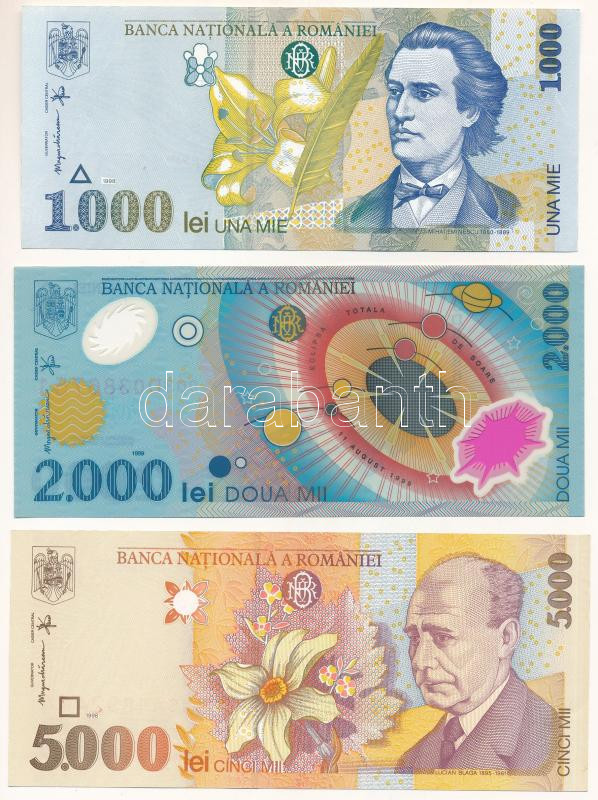 Románia 1998. 1000L + 5000L + 1999. 2000L T:UNC-AU