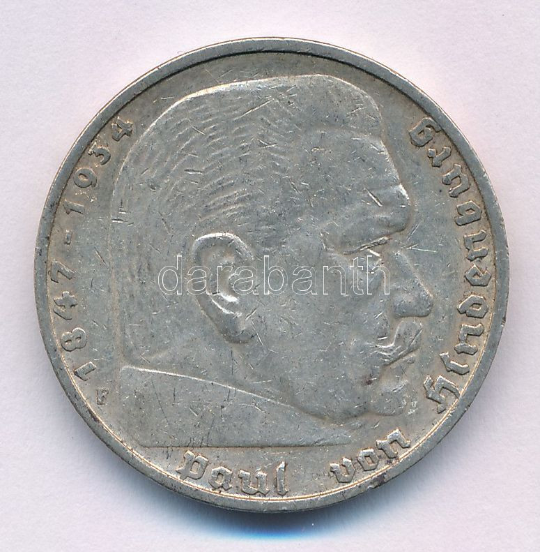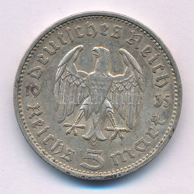 Német Harmadik Birodalom 1935F 5M Ag "Paul von Hindenburg" T:XF,VF