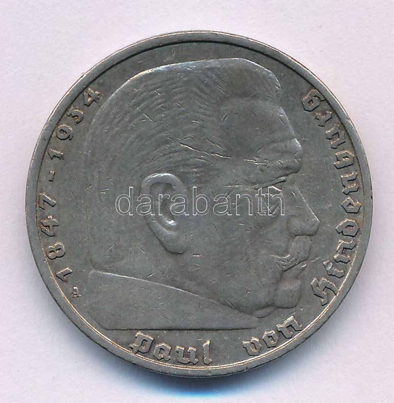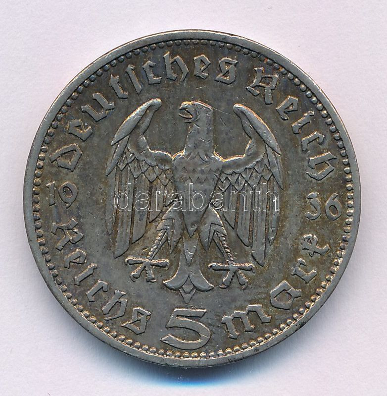 Német Harmadik Birodalom 1936A 5M Ag "Paul von Hindenburg" T:XF karc