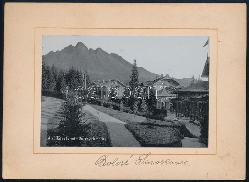 cca 1900-1910 Alsó-Tátrafüred (Dolný Smokovec/Bad-Schmecks/Unter-Schmecks) részletének fotója, fotó kartonon, feliratozva, 6x9 cm