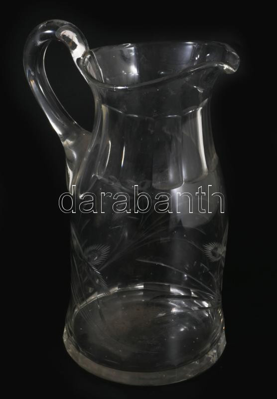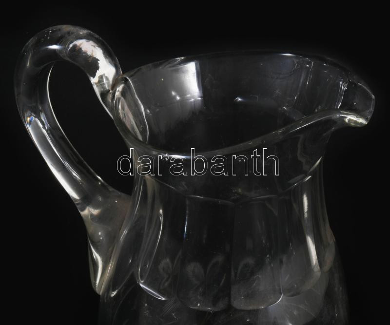 Antik ólomkristály kancsó, jelzés nélkül, csiszolt mintával, m: 26 cm