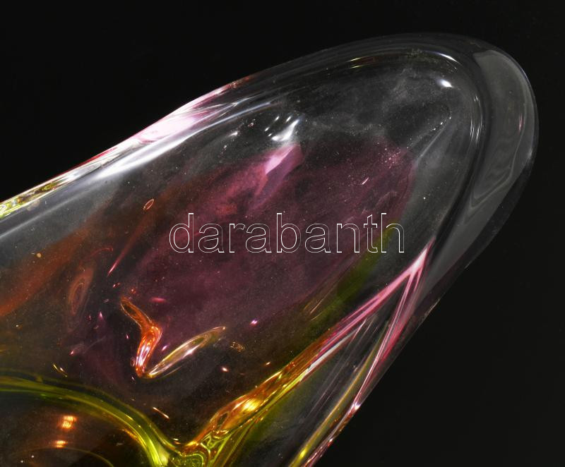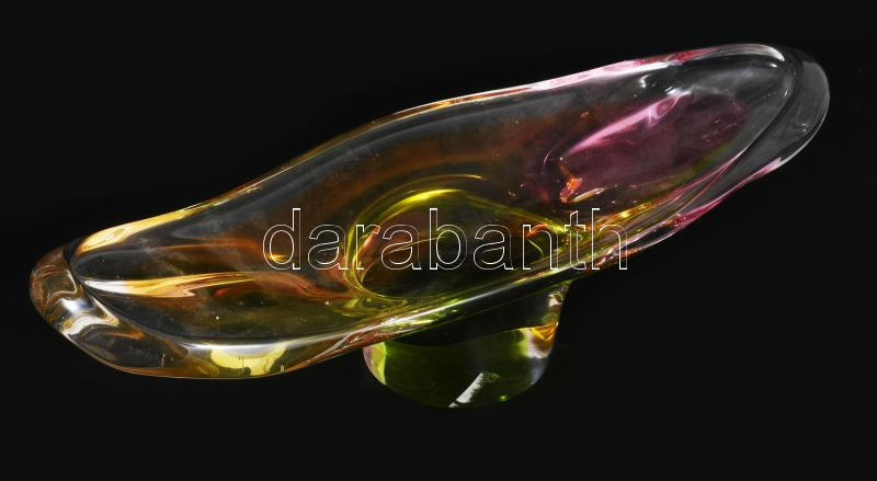 Chribska cseh multicolor színezésű asztaldísz kínáló, Terv: Josef Hospodka, minimális kopással, 35x10 cm