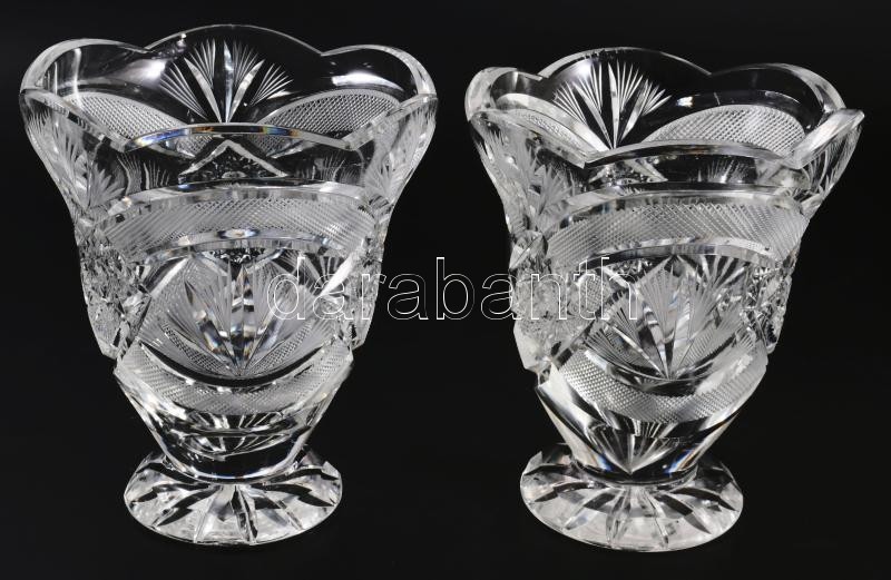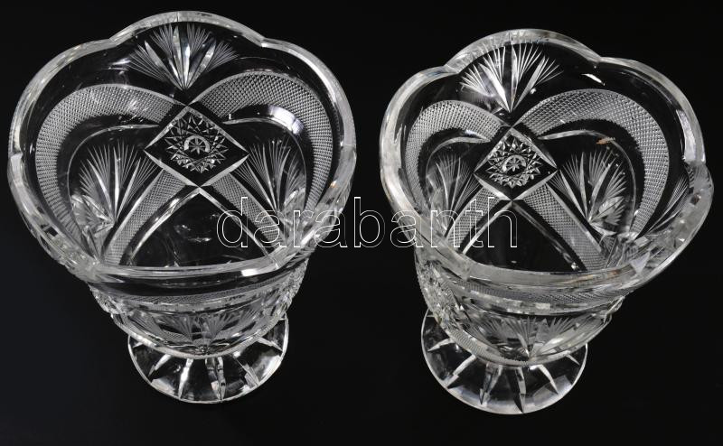 Gazdagon csiszolt kristály talpas váza pár, hibátlan, m: 15 cm