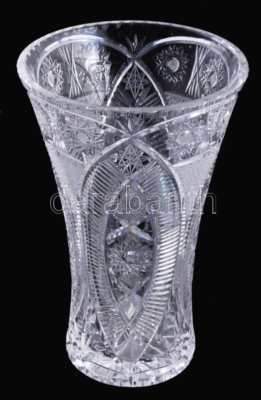 Gazdagon csiszolt mintával díszített ólomkristály váza, hibátlan, m: 2...