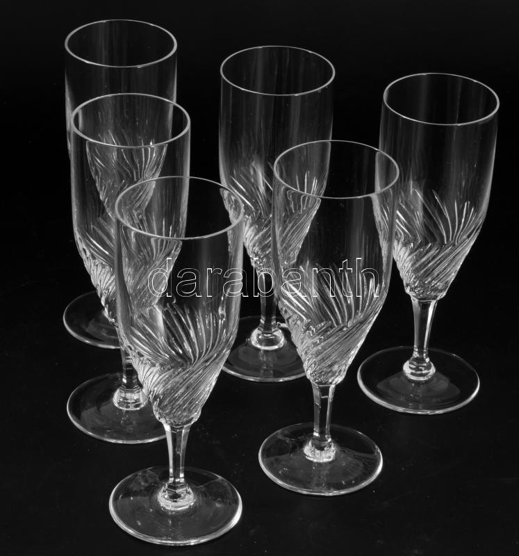 Kristály pezsgős pohár készlet. 6 darab, hibátlan, m: 16 cm