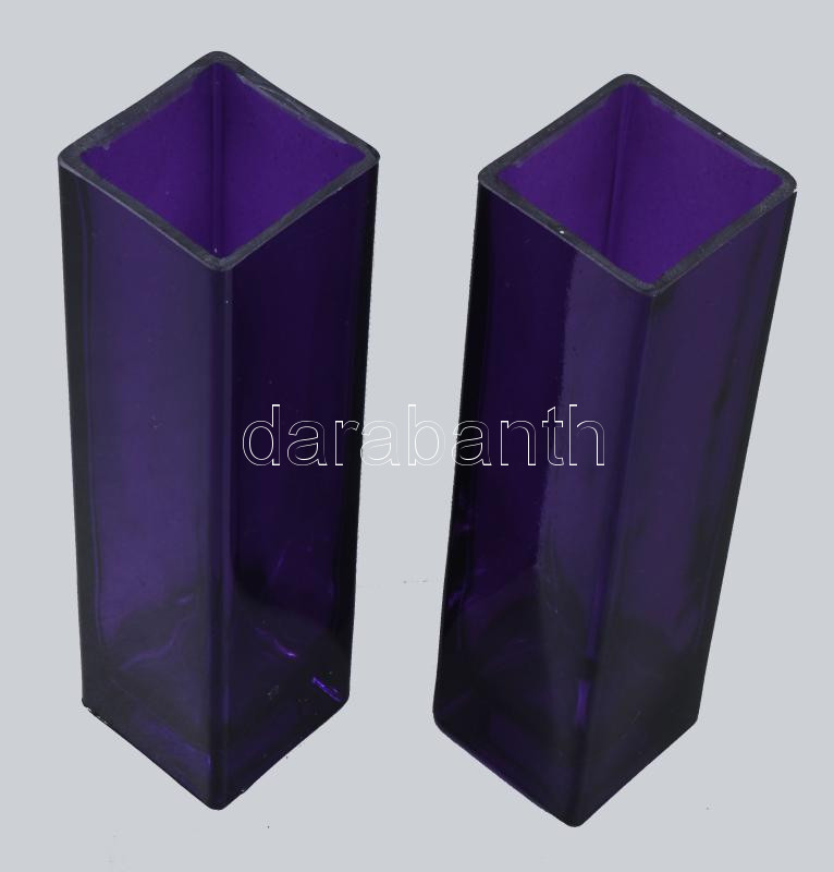 Lilán színezett hasábváza pár, hibátlan, m: 21 cm