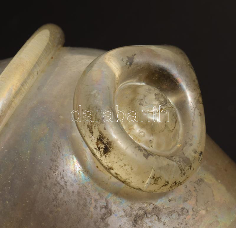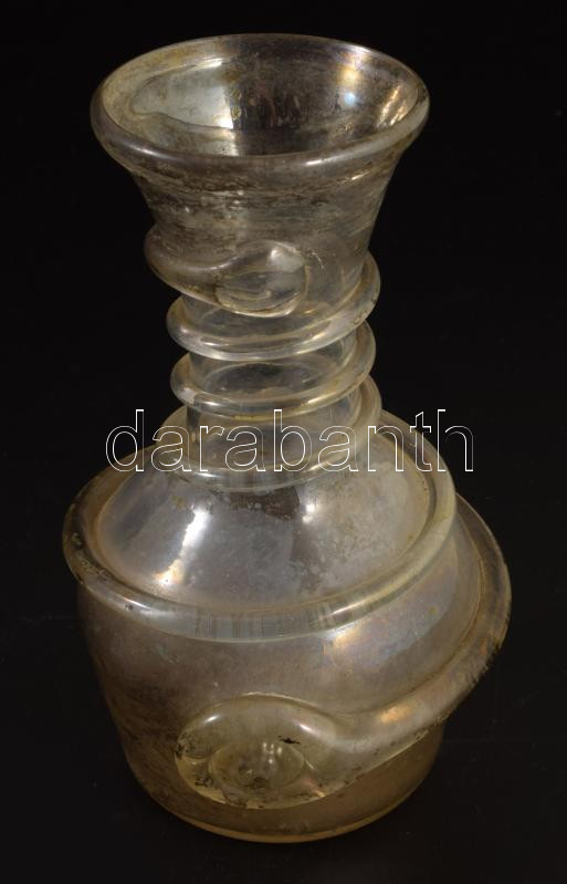 Palack. Száldíszítéses hutaüveg, cca 18-19. sz., hibátlan, m: 14 cm